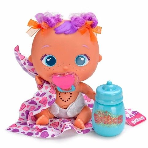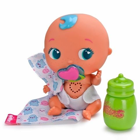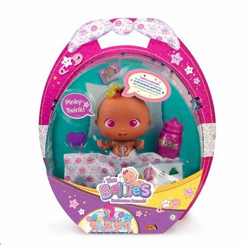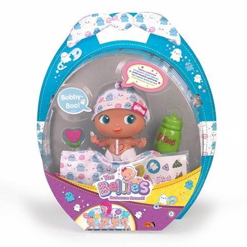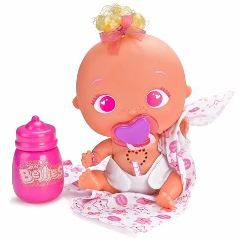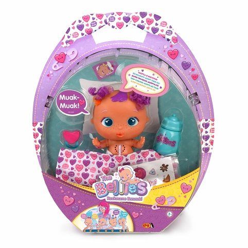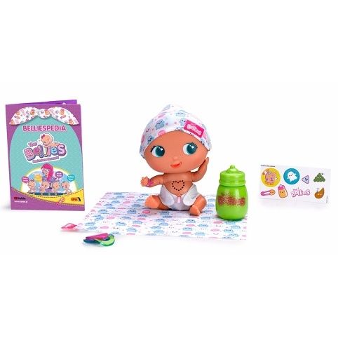 Roztomilá miminka Bellies hledají nový domov. Interaktivní miminka žvatlají a bije jim srdíčko. Každé má unikátní mateřské znaménko. Součástí balení je spousta doplňků, které ti pomůžou s péčí o miminko. Adaptuj jedno nebo třeba všechny! Obsah balení: panenka, kojenecká láhev, dudlík, deka s potiskem, sada samolepek, adopční listina. Assort 4: Pinky-Twink, Yumi-Yummy, Muak-Muak, Bobby-Boo. Pro děti od 2 let. Na baterie: 2x AAA (jsou součástí balení)