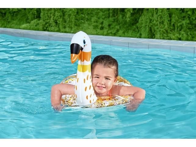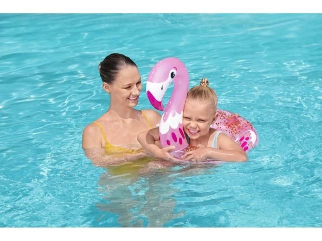 Užijte si kouzelný den na vodě s nafukovacím kruhem v designu plameňáka, nebo labutě. Nafukovací kruh je vyplněný třpytkami. Plameňák i labuť mají nejen živou, mnohobarevnou grafiku, ale také dlouhý krk. S tímto majestátním kruhem přiveďte sluneční paprsky na další bazénovou párty!
