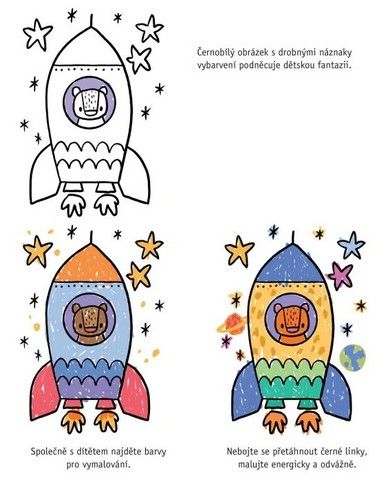 Nebojte se přetáhnout černé linky, malujte energicky a odvážně. Sešit obsahuje doporučení, jaké kreslící pomůcky je nejlepší pořídit. Najdete zde rady, jaký styl úchopu těchto pomůcek je pro určitý věk malých dětí nejvhodnější.