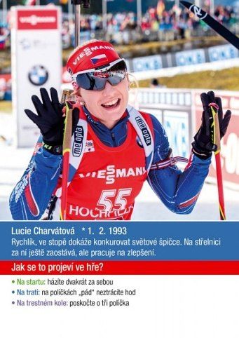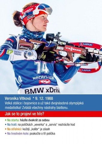 Nová Biatlonmánie je tady! A s ní do vašich domovů přichází atmosféra a napětí jako při opravdovém biatlonu. Zahrajte si 4. vydání, které je aktualizované na základě loňské sezony. Bavte se jako Michal Šlesingr nebo Veronika Vítková. Házejte kostkou a žeňte svého biatlonistu vpřed po tratích Světového poháru v Novém Městě na Moravě. Zdolávejte kopce, sjíždějte svahy, nechte se vyhecovat od trenéra a nedarujte ani políčko ostatním závodníkům. Vyzkoušejte si sprint, stíhačku nebo štafetu. Troufnete si hrát dvěma figurkami najednou? Právě vám je určen Mazaný biatlon. Při této novince bude zásadní vaše taktika a strategické myšlení. Další novinkou jsou karty biatlonistů. Z deseti karet si vylosujte svého sportovce, kdy jejich schopnosti jsou teď vaše schopnosti. Se společenskou hrou Biatlonmánie zažijete to, co na trati prožívají i naši biatlonisté. Zápletky i dramata, radost i smutek. A možná se u této zábavy i trochu zapotíte! Desková hra pro 2 - 8 hráčů, doporučený věk 6 - 99 let, délka hry 45 minut a více.