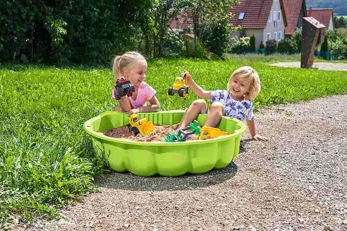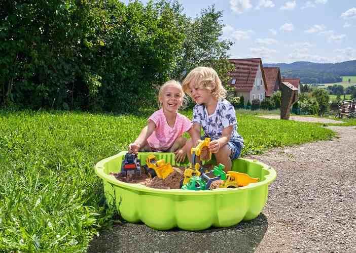 Pískoviště a brouzdaliště v jednom, složené ze 2 dílů s možností uzavření, z velmi kvalitního a pevného plastu. Barva zelená. Kapacita pískoviště 100 litrů. Pro písek cca. 15 - 20 kg na polovinu skořepiny a 40 litrů objem vody pro naplnění do výšky asi 9 cm. Velikost po montáži 180 x 87 x 20 cm. Hmotnost 1,9 kg.