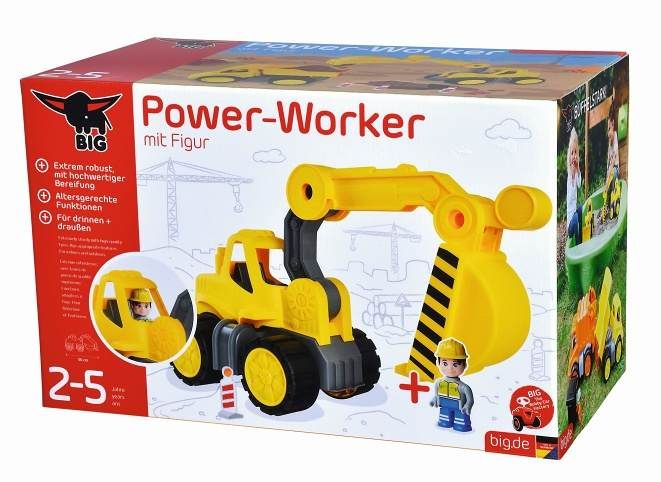 Bagr z řady Power Worker z kvalitního plastu. S pohyblivou lžící o kapacitě cca 0,5l. Pneumatiky z měkkého plastu. Součástí figurka o velikosti 10 cm. Po použití v písku lze hygienicky vyčistit pod tekoucí vodou. Délka bagru vč. lžíce 56 cm. Rozměry: 67 x