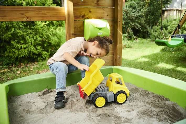 Sklápěčka z řady Power Worker z kvalitního plastu. S pohyblivými částmi. Objem cca 1litr. Pneumatiky z měkkého plastu. Součástí figurka o velikosti 10 cm. Po použití v písku lze hygienicky vyčistit pod tekoucí vodou. Délka 31 cm. Rozměry: 31 x 20 x 23 cm.