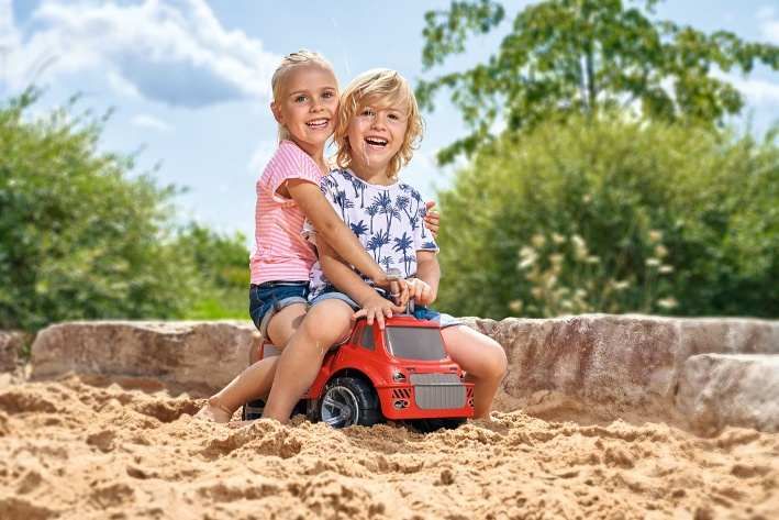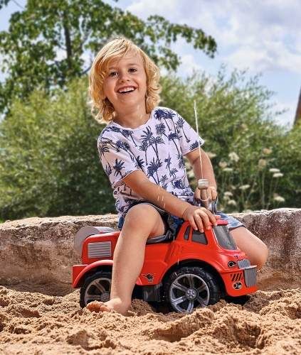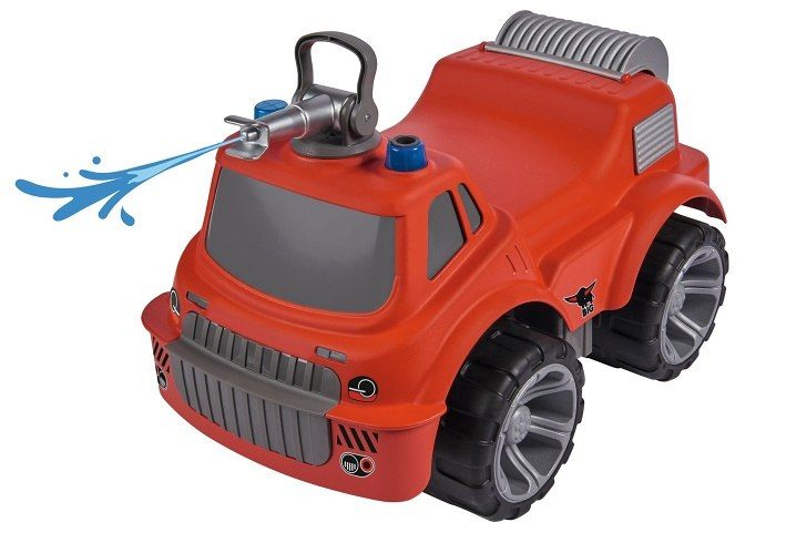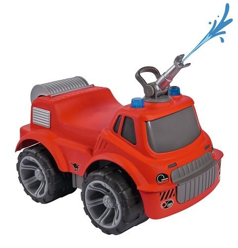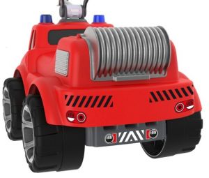 Velký hasičský vůz z řady Power Worker se sedadlem a realistickou funkcí stříkání vody, s otočným a výškově nastavitelným vodním dělem, snadno ovladatelné tlačítkem čerpadla. S úložnou schránkou za sedadlem. Objem nádrže 2 l. Na autíčku se dá jezdit v interiéru i exteriéru. Pneumatiky z měkkého materiálu. Nosnost max. 50 kg. Výška sedadla 22 cm. Rozměry: 46 x 33 x 33 cm.