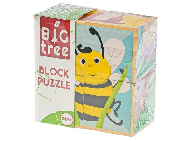 Big Tree kostky dřevěné 4ks zvířátka 10x10x5cm 24m+ ve fólii