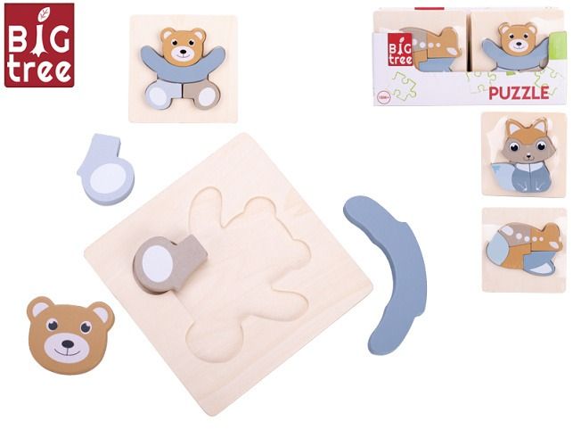 Big Tree puzzle dřevěné 15x15cm 4-5ks 3druhy 18m+ ve fólii