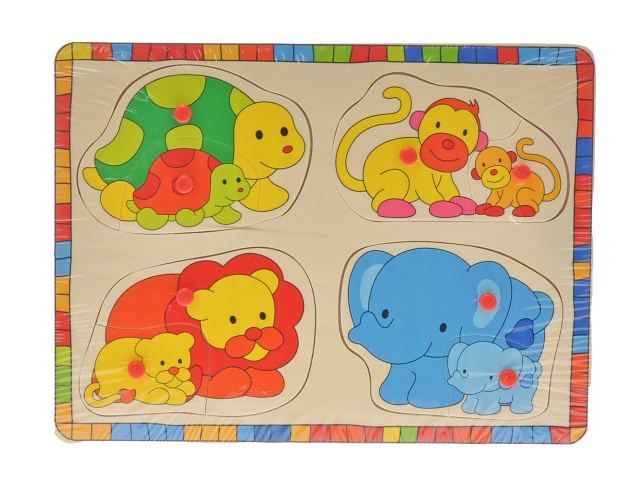 Dřevěná vkládačka z kolekce 2-Play s motivem zvířátek. Každé zvířátko má na sobě úchytku pro snažší držení a následné vložení do správného otvoru. Vkládačka má rozměr 30 x 22,5cm. Je vhodná pro děti od 12 měsíců. Děti se naučí rozeznávat zvířátka a procvičí si i jemnou motoriku rukou.