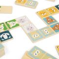 Krásné domino s lesními zvířátky má 28 dílků, které mají velikost tak akorát pro dětské ruce. Ideální hra na cesty, která děti nadchne nejen veselou ilustrací, je zabalená v bavlněném pytlíku. Děti se naučí trpělivosti a všemu dalšímu, co patří ke hře ve více lidech. Vyrobeno z eticky získaného a udržitelného dřeva s certifikací FSC®, malováno netoxickými barvami a laky. Odpovídá evropským bezpečnostním standardům. Hlavní vlastnosti: dětské domino, 28 dílků s ilustracemi zvířat, 1 bavlněný pytlík, vyrobeno z FSC® certifikovaného dřeva, vhodné od 2 let Jak hrát domino: Dílky domina položte na stůl nebo jinou hrací plochu lícem dolů a zamíchejte. Každý hráč si vezme 6 dílků domina (pokud je více než 3 hráčů, každý si vezme 6 dílků domina), které nesmí vidět nikdo z protihráčů! Ostatní domina dejte stranou na hromádku. Začínající hráč položí jedno domino obrázkem nahoru na hrací plochu. Druhý hráč musí položit navazující domino. Pokud žádný z jeho dílků nelze navázat na již položené domino, přibírá si tento hráč domino z hromádky. Na řadě je další hráč. Takto se hráči střídají na řadě, dokud se jeden z nich nezbaví všech dílků domina. Tento hráč vítězí a hra je u konce.