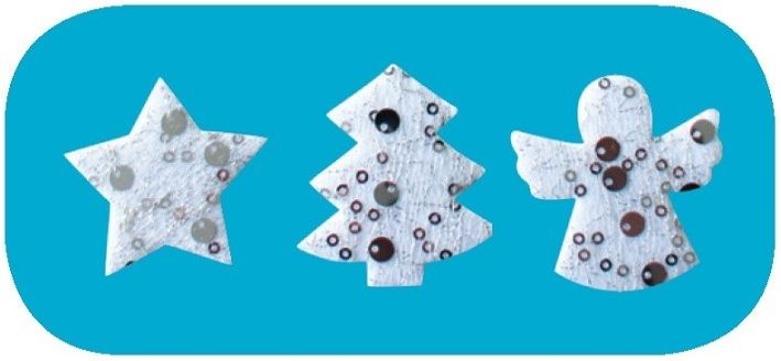 Bílá hvězda,stromek,anděl se stříbrnými flitry 5cm, 12ks
