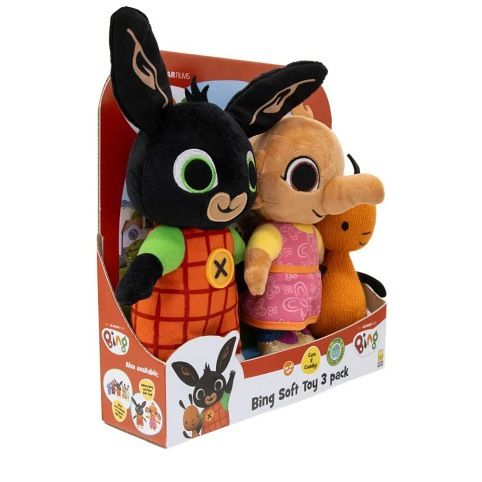 Sada plyšových postav z populární pohádky králíček Bing. Sada obsahuje všechny oblíbené postavičky ze seriálu: Bing, Sula a Flop. Díky těmto plyšovám kamarádům z vysoce kvalitního materiálu si vaše dítě bude moci zahrát své oblíbené pohádkové scény. Vhodné pro děti od 10 měsíců.