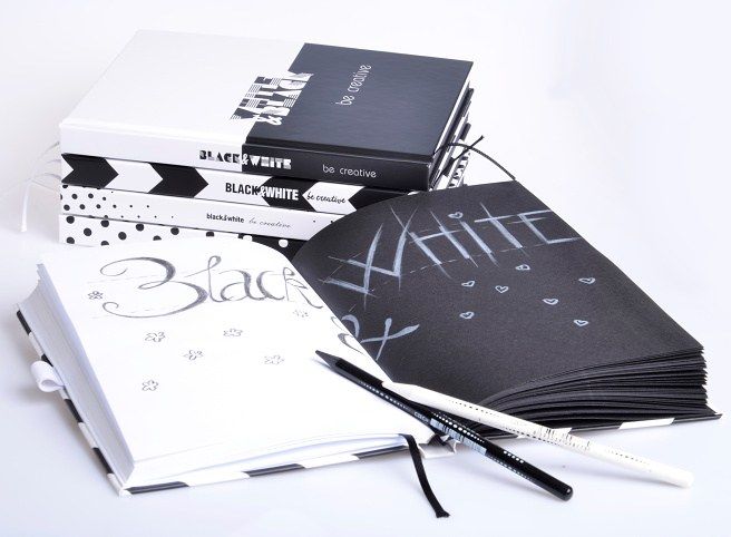 BE001-4 Black and white - A5 - kreativní notes - pearl-2