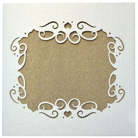 s velmi jemným prořezáním ve tvaru filigránového rámečku, pod kterým prosvítá vnitřní papír nebo fotografie