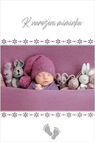 Vnitřní text: "Blahopřejeme k narození malého štěstí, které se narodilo z Vaší lásky. Hodně zdraví Vám i Vašemu miminku přeje". Přání o rozměru 115 x 170 mm je tištěno na strukturovaném papíře a zdobeno stříbrnou ražbou. Dodávame v sáčku s obálkou.