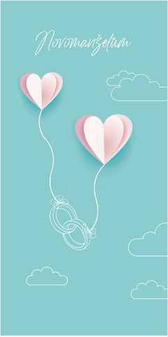 Přání o rozměru 100 x 200 mm je dodávano v sáčku s obálkou. Vnitřní text: "Našli jste jeden druhého a pocítili štěstí, které přichází, když dva životy spojí láska. Ať se nic z těchto krásných chvil nevytratí přeje"