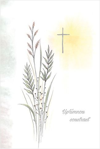 Vnitřní text: "Cítíme s Vámi v těchto těžkých chvílích. ". Přání o rozměru 115 x 170 mm je tištěno na strukturovaném papíře a zdobeno stříbrnou ražbou. Dodávame v sáčku s obálkou.