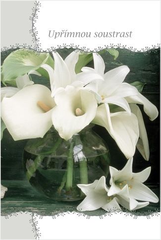 Přání o rozměru 170 x 115 mm je zdobeno stříbrnou ražbou a je dodávano v sáčku s obálkou. Vnitřní text: "Žádná slova nemohou vyjádřit zármutek, který v tuto bolestnou chvíli cítíme. Upřímnou soustrast"