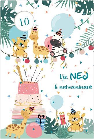 Blahopřání k výročí s otočným číselníkem 10 - 109. Je zdobeno modrou ražbou a je dodáváno v sáčku s obálkou. Rozměr přání: 115 x 170 mm. Vnitřní text: "S radostí a úsměvem užívej si každý den. Užij si svou oslavu narozenin!"
