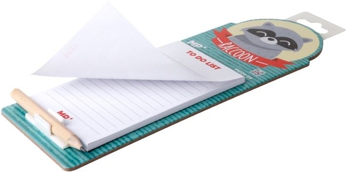 Bloček s tužkou na tvrdé podložce s magnety - vhodný třeba na lednici k zapisování chybějících potavin.