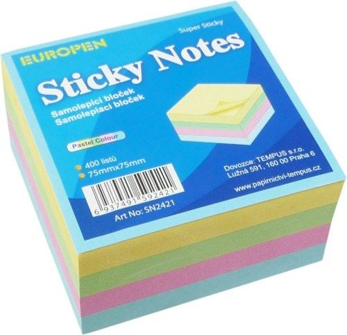 Samolepící bloček obsahuje 4 barvy x 100 listů, které mohou být opakovaně použity. Listy nezanechávají stopy po použití a samovolně se neodlepují.