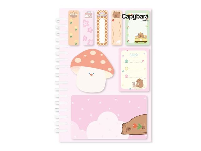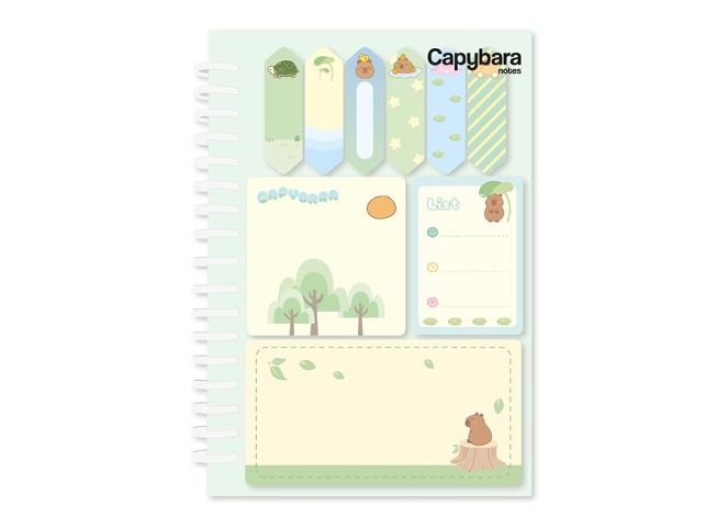Samolepicí set bločků se spirálou je roztomilý i praktický pomocník pro všechny, kdo si rádi zapisují, připomínají, plánují… a milují kapybary! Obsahuje mix různě velkých bločků na poznámky, úkoly i drobné vzkazy.