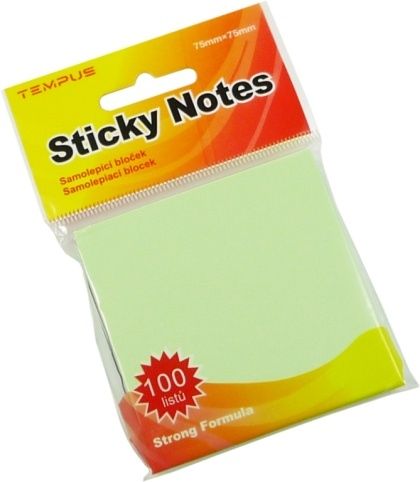 Samolepící bloček zelený obsahuje 100 listů, které mohou být opakovaně použity. Listy nezanechávají stopy po použití a samovolně se neodlepují.