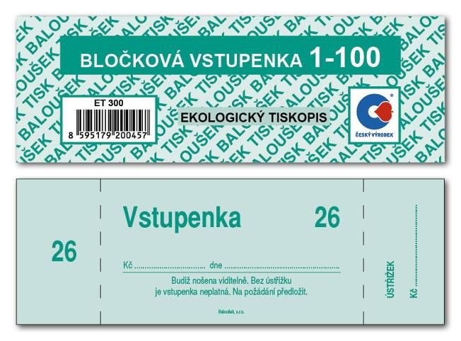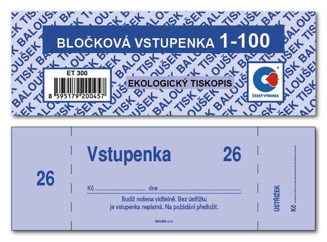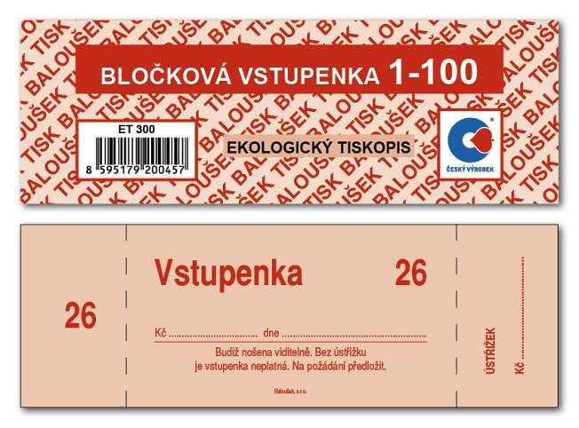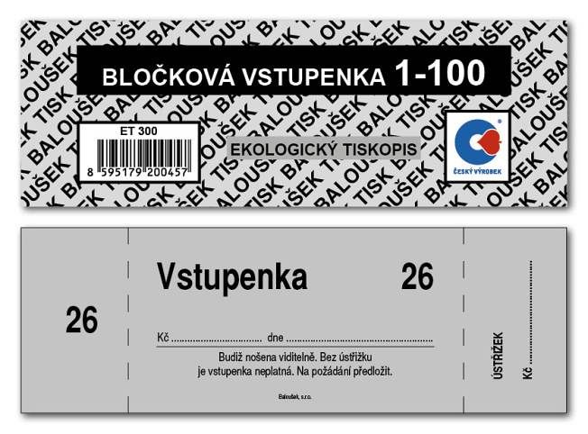 Bločkové vstupenky 1 - 100 čísel / ET300 / Baloušek tisk