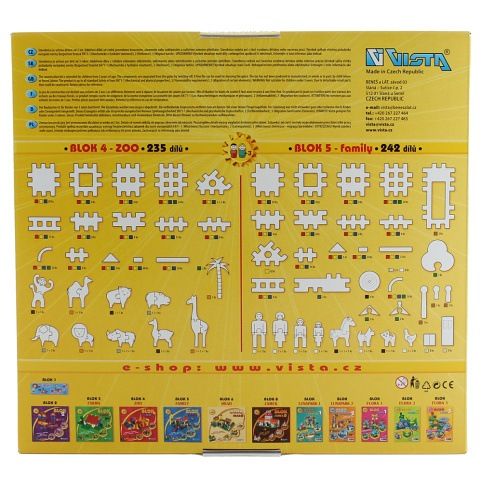 Stavebnice BLOK 4 ZOO obsahuje 235 dílků, ze kterých si můžete sestavit např.: zoologicku zahradu, domeček,....
