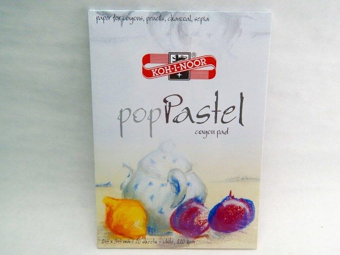 Lepený blok pro pastelky, tužku, uhel, sépii. Na přední obálce v horní části mašle, název pop Pastel, barevný motiv, formát 245 x 345 mm – 20 bílých listů, 220 g/m2. Zadní část obálky: karton. Lepení: v hlavě. Na záložce obálky na zadní straně bloku – jazykové mutace, text v anglickém jazyce na přední obálce. Rozměr 345 x 245 x 9 mm.