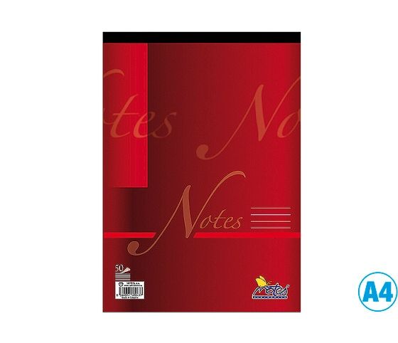Poznámkový trhací blok z bezdřevého papíru, šitý na kratší straně, podlepený šedou lepenkou.Formát: A4Počet listů: 50Vzor: linkovaný 8mmGramáž: 60g