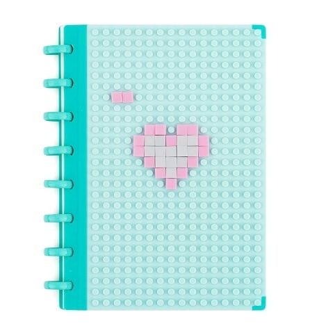 Zábavný linkovaný blok, který probudí dětskou fantazii. Na obálku si může vaše dítě poskládat vlastní obrázek z barevných kostiček a vytvořit si tak originální sešit podle své představivosti. Blok má pevnou obálku z odolného polypropylenu a praktickou kroužkovou vazbu, která usnadňuje otáčení stránek. Uvnitř se nachází 80 linkovaných listů pro psaní, kreslení nebo poznámky. Součástí balení je 60 kostiček, ze kterých si můžete vytvořit libovolný obrázek na přední straně bloku. Skvělý doplněk pro školáky a malé kreativce.