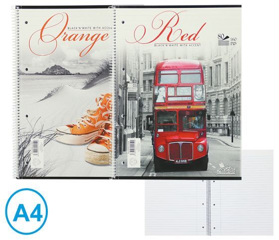College blok z bezdřevého papíru, spirála na delší straně, čtyři otvory pro vložení do karis bloku, podlepený šedou lepenkou. Mix motivů Formát: A4 Počet listů: 80l Vzor: linkovaný 8mm Gramáž: 60g