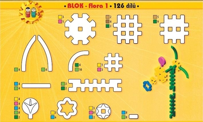 Stavebnice Blok - Flora 1 obsahuje 126 dílků, ze kterých si můžete sestavit různé druhy květin,...- Věkové určení 3+