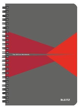 Blok "Office", šedo-červená, drátěná kroužková vazba, A5, čtverečkovaný, 90 listů, laminov