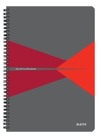 Blok "Office", šedo-červená, drátěná kroužková vazba, A4, čtverečkovaný, 90 listů, laminov