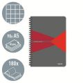 Blok "Office", šedo-červená, drátěná kroužková vazba, A5, čtverečkovaný, 90 listů, laminov
