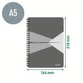 Blok "Office", šedo-červená, drátěná kroužková vazba, A5, linkovaný, 90 listů, laminovaný