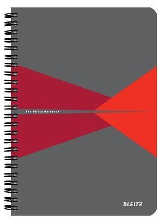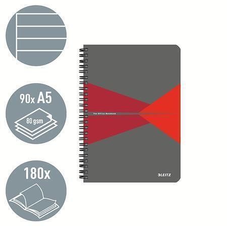 Blok "Office", šedo-červená, drátěná kroužková vazba, A5, linkovaný, 90 listů, plastový po