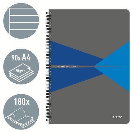 Blok "Office", šedo-modrá, drátěná kroužková vazba, A4, linkovaný, 90 listů, laminovaný po