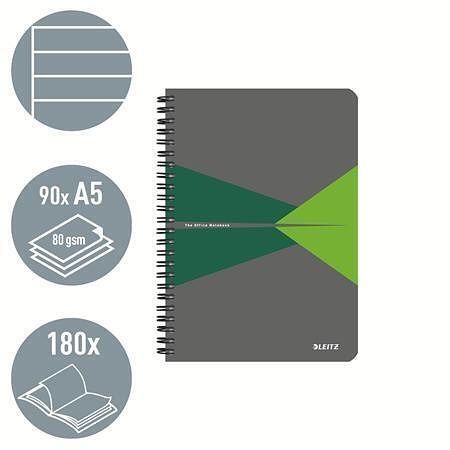 Blok "Office", šedo-zelená, drátěná kroužková vazba, A5, linkovaný, 90 listů, laminované d