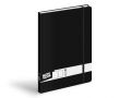 Zápisník je opatřený gumičkou proti samovolnému otevření a záložkou.