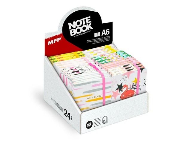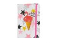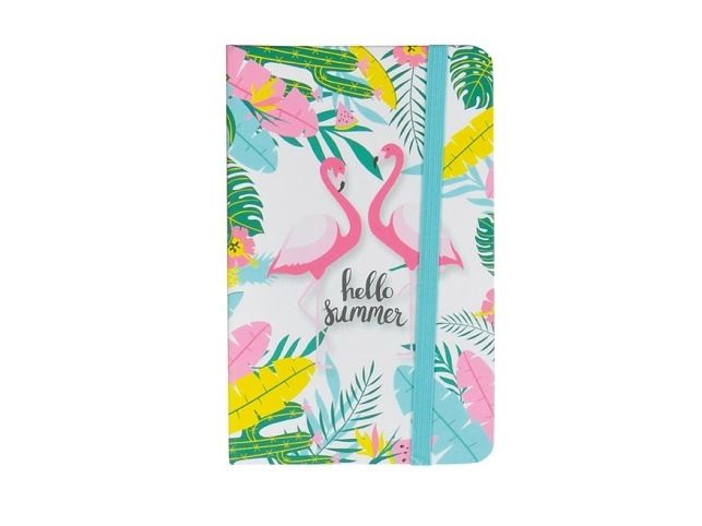 Designový bloček praktických rozměrů. Má gumku, která zamezí nechtěnému otevření. Na výběr z 8 motivů - plameňáci, jahody, lama, abstraktní motivy. Blok A6 s gumkou, 96 listů s linkami, papír 70g.