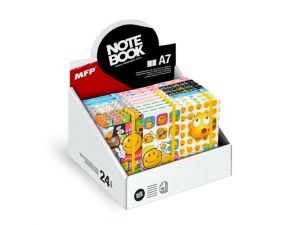 Designový bloček praktických rozměrů. Má gumku, která zamezí nechtěnému otevření. S motivem smajlíků. Blok A7 s gumkou, 80 listů s linkami, papír 80g.
