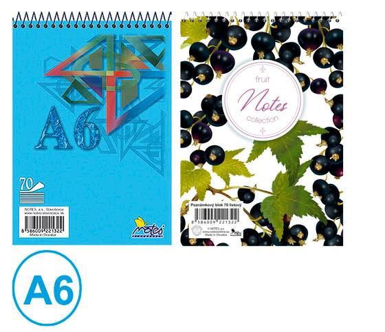 Spirálový blok z bezdřevého papíru, spirála na kratší straně, podlepený šedou lepenkou.Formát: A6Počet listů: 70Vzor: čistý bez linekGramáž: 60g