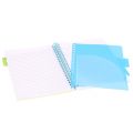 Poznámkový blok s boční spirálou, B5, 100 listů, linkovaný. Barevné rozlišovače pro lepší orientaci. Perforované stránky, polypropylenové desky.