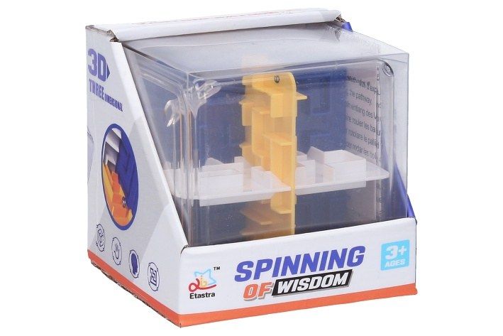 Bludiště 3D kostka barevná. Velikost 9cm. Cílem je dostat kuličku do jamky. Lze postupovat podle číslic na jednotlivých stěnách.
