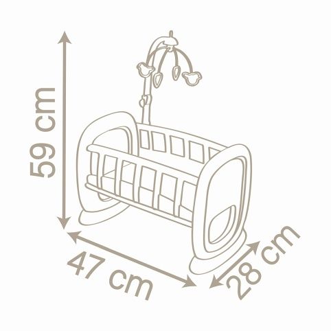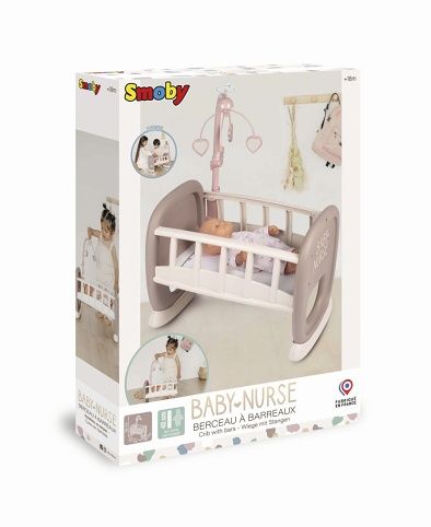 Kolébka Baby Nurse pro panenky je kolébka i postýlka. Ručně otočný mobil připevněný ke kolébce pomůže usnout. Díky kvalitnímu plastu je kolébka pro panenku velmi lehká a snadno se přenáší. Povrch lze rychle očistit vlhkým hadříkem. Vhodné pro panenky do 4