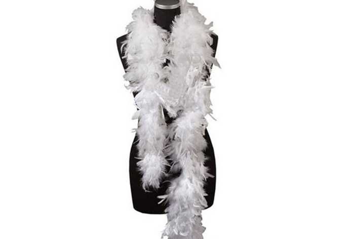 Kvalitní péřové boa v bílé barvě. Vhodné jako doplněk na párty ve stylu 20. let, karneval i večírek.