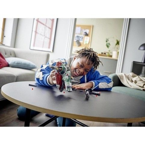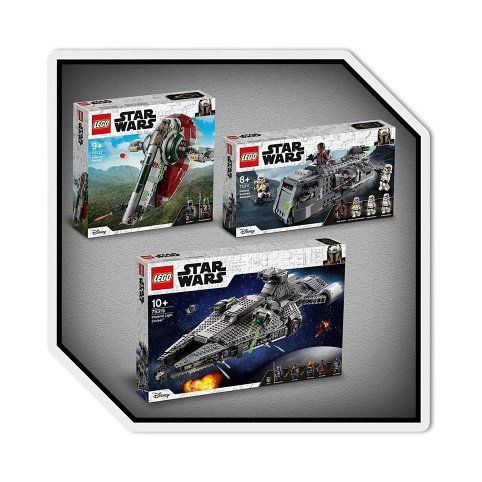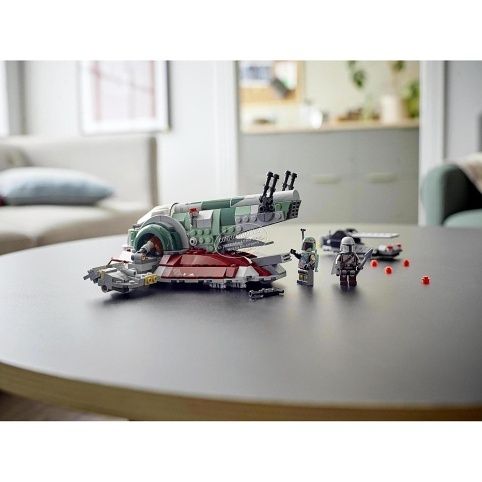 S touto důmyslnou LEGO® verzí kosmické lodi Boby Fetta (75312) si fandové Star Wars seriálu The Mandalorian mohou hrát na souboje a mise námezdního lovce odměn. Součástí modelu je rukojeť pro snadné létání, otevírací kokpit pro LEGO minifigurku, pohyblivá křídla, 2 vystřelovače a 2 otočná dvojitá děla (nevystřelují). Tato prémiová stavebnice obsahuje také LEGO minifigurky Boby Fetta a Mandaloriana se zbraněmi, navíc nechybí ani karbonitová kostka, která má na lodi své místo.