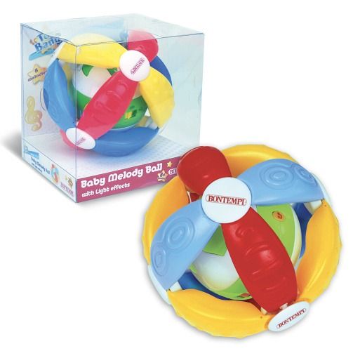 Bontempi Míč s dětskou melodií • 8 předem nahraných melodií • Zvukové efekty • Dítě se směje • Hudební přestávky • Kouzelná světelná show • Napájení: 3 x R03 / AAA 1,5V baterie (nejsou součástí balení) • Rozměr: 150x150x150 mm