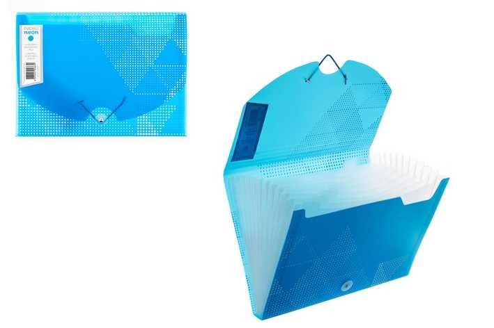 Box na dokumenty 12 rozdělovačů NEON,A4,PP,modrý